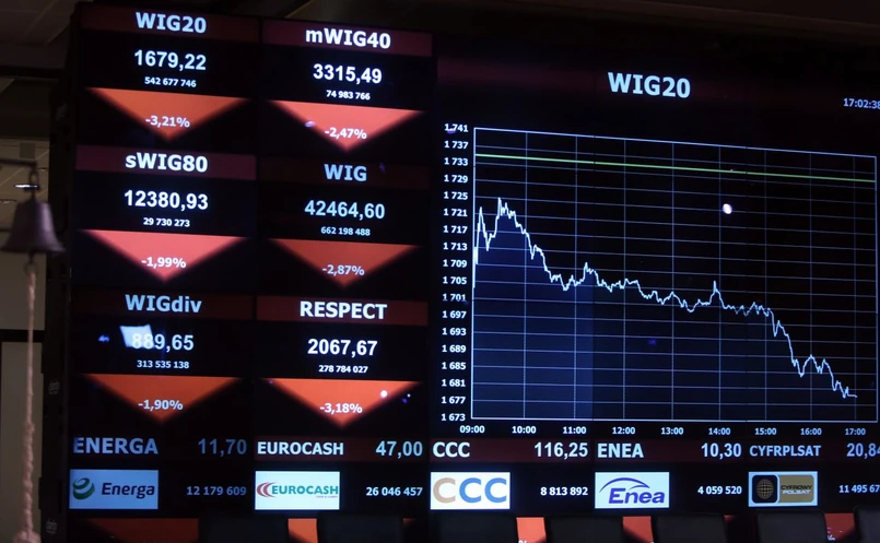 Potem inwestorzy zwiększyli skalę wyprzedaży akcji. Około 9:30 indeks dużych spółek WIG 20 traci ponad półtora procent, a indeks podstawowy jest na ponad procentowym minusie.