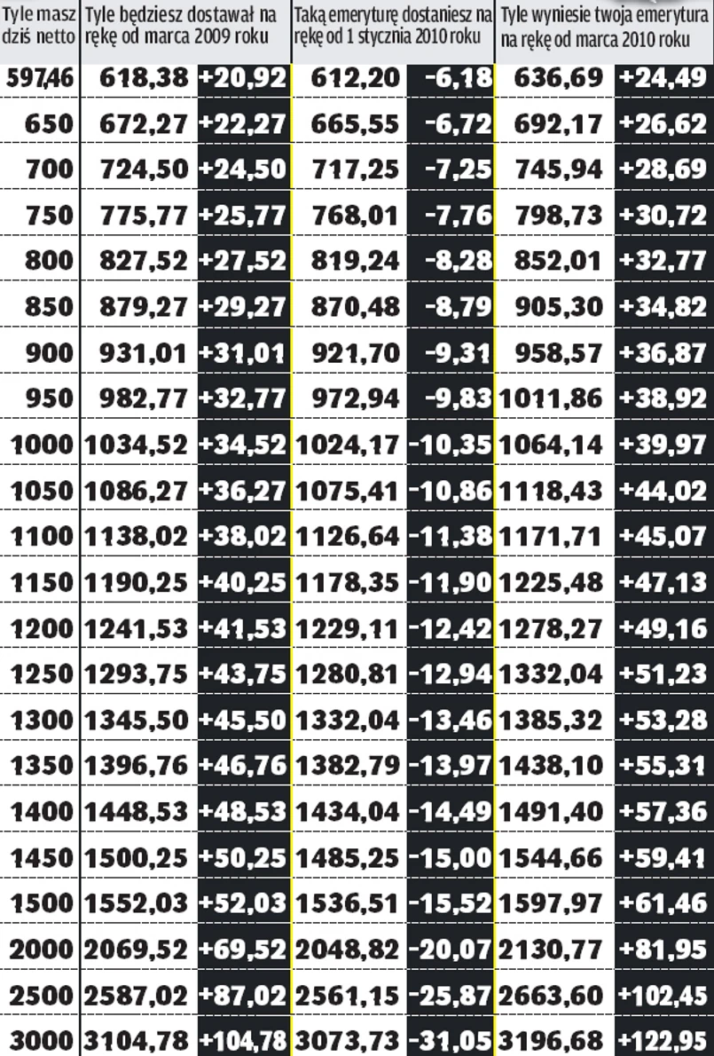 Radość emerytów z waloryzacji nie będzie trwała długo. Z oficjalnych danych ZUS wynika, że choć najpierw świadczenia będą większe średnio o 30-50 zł, to potem znowu zmaleją. Średnio o 16 zł miesięcznie. I to już w styczniu 2010 roku - alarmuje "Fakt".