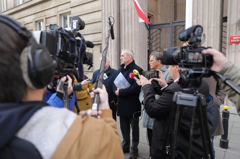 Po trwającym blisko 1,5 godziny spotkaniu prezes Związku Nauczycielstwa Polskiego pytany był przez dziennikarzy m.in. o to, co związkowcy usłyszeli od ministra na temat podwyżek. Od 1 stycznia 2023 r. średnie wynagrodzenie nauczycieli na wszystkich stopniach awansu ma wzrosnąć o 7,8 proc., czyli tak jak całej sfery budżetowej.
