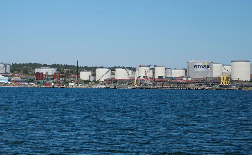 Nad zakładem znajdującym się nad Bałtykiem w pobliżu portu Nynashamn, dokąd przypływają promy z Gdańska Polskiej Żeglugi Bałtyckiej, unoszą się kłęby czarnego dymu.